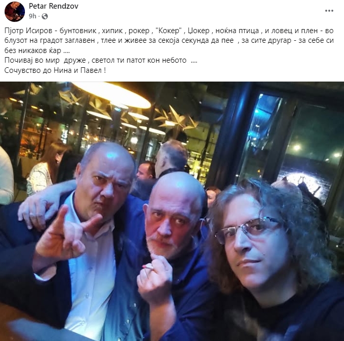 „Пјотр Исиров – бунтовник , хипик , рокер , “Кокер” , Џокер , ноќна птица , и ловец и плен – во блузот на градот заглавен , тлее и живее за секоја секунда да пее , за сите другар – за себе си без никаков ќар …. Почивај во мир друже , светол ти патот кон небото..