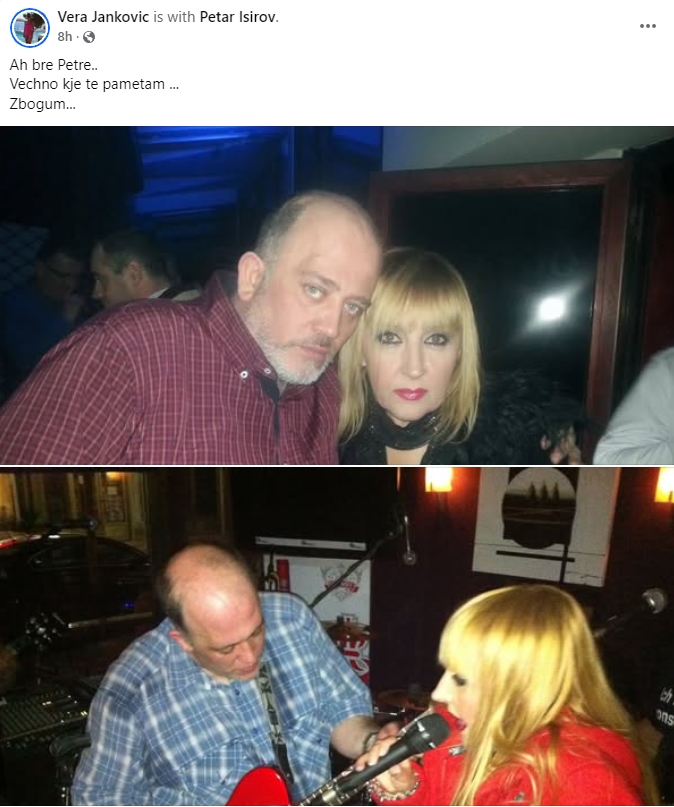 „Ах бре Петре… Вечно ќе те памтам… Збогум!“ – кусо споделила пејачката и ДЈ Вера Јанковиќ заедно со фотографии од некои од нивните заеднички настапи и дружења.