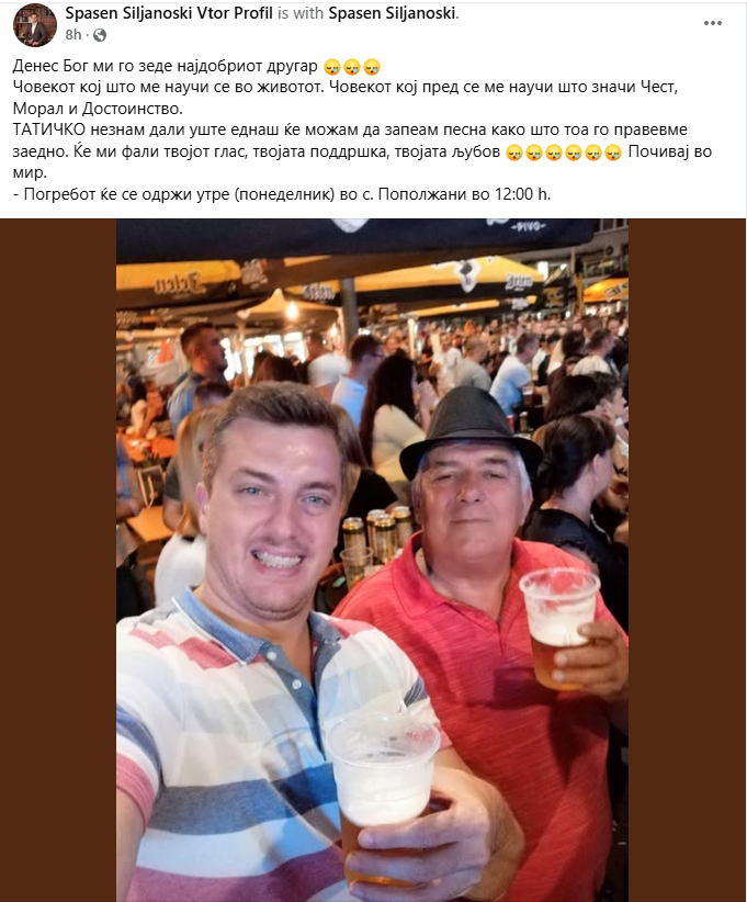 Почина татко му  на Спасен Силјаноски: „Денес Бог ми го зеде најдобриот другар, човекот кој што ме научи сè во животот“