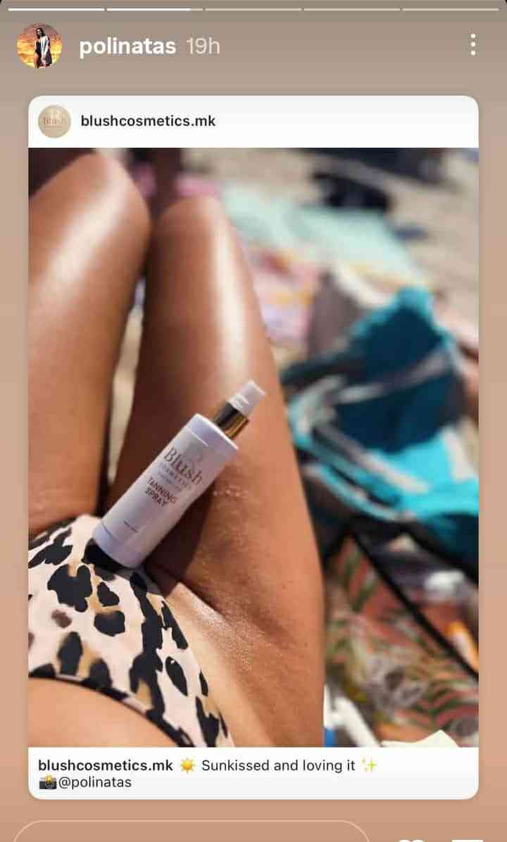 Пејачката испружена под сонцето реши да рекламира еден козметички производ, но не само онака, туку смислено, тактички, посатавен кај голиот препон на венериниот брег од бикинито со анимал принт.