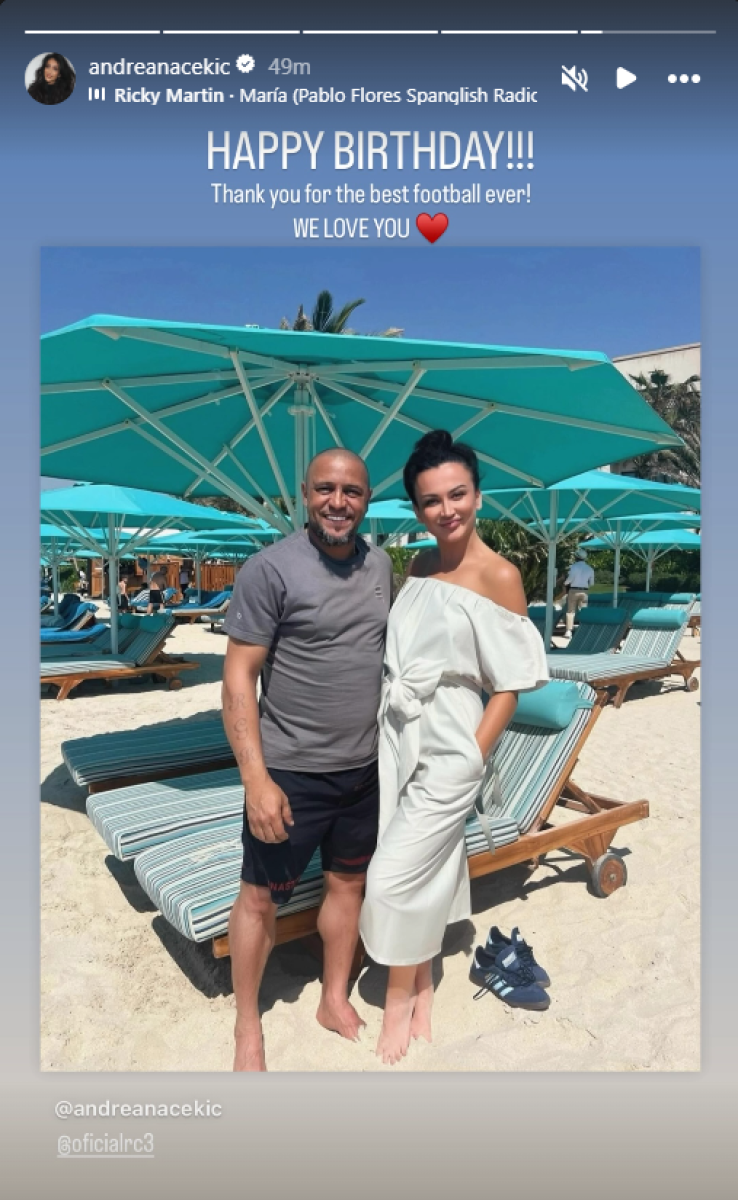 Имено, Андреана Чекиќ денот го помина уживајќи на плажа, но и во друштво на поранешниот бразилски фудбалер Роберто Карлос.