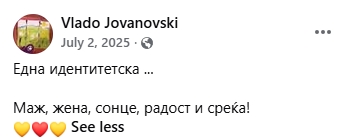 Нека му е жив и здрав внукот, да го следи безгрижно детство, среќа, успеси, цел живот да ги прави горди и неговите родители и дедо Владо и целото семејство Јовановски.