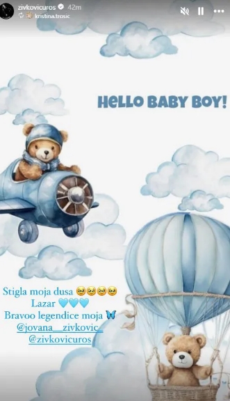 Познатиот српски пејач Урош Живковиќ стана татко, неговата сопруга Јована роди момче.