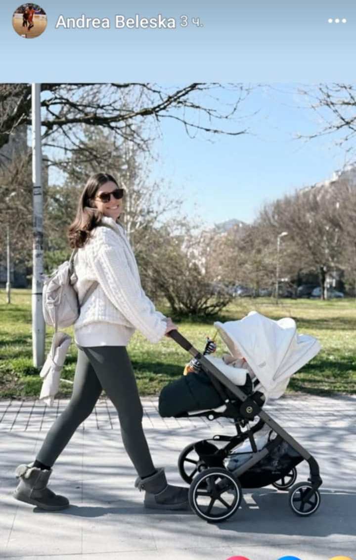 За мама Андреа како спортист, очигледно постпартумот во поглед на физичкиот изглед поминува доста брзо, така што таа храбро се стави во хеланки и тргна на прошетка во парк со бебето.