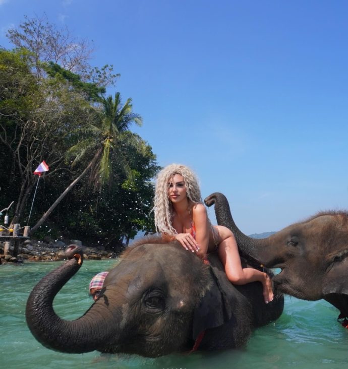 Ѕвездата од реалното шоу „Елита“ повторно предизвика воздишки кај своите обожаватели со споделените фотографии на кои го јава слонот.