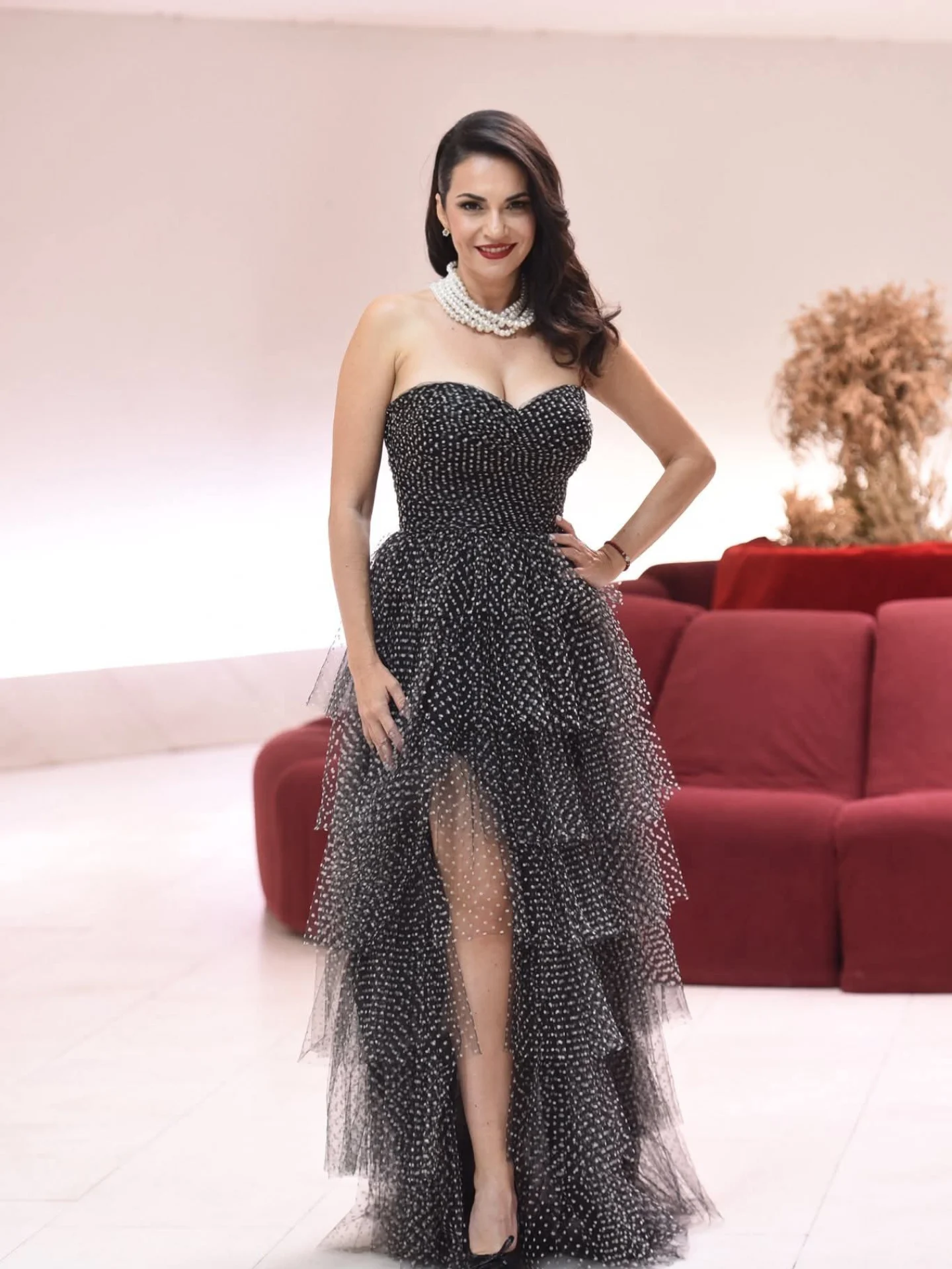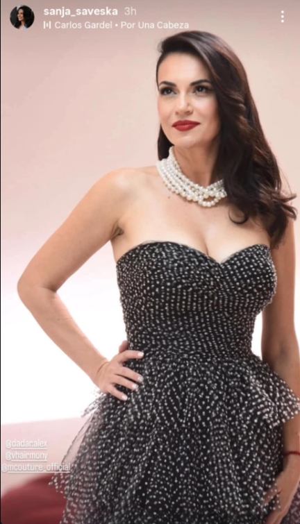 ТВ водителката на „Брза кујна“, Сања Савеска, заводливо позираше во долг фустан и се пофали со својот изглед.