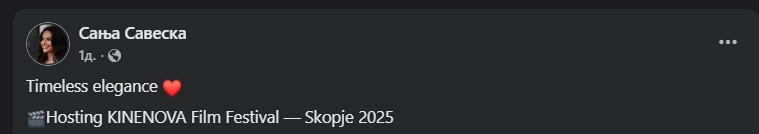 Поводот за кој водителката се појави во ова издание е нејзиното присувство на фестивалот Киненова, а таа на Фејзбук покрај ова издание напиша: