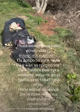 -Нема месец дена како исчистивме со Димитар. Па добро бе луѓе, нели Ви е жал за природата? Па и самите Вие тука живеете, нашите деца треба да останат тука исто. Нели малце од малце Ви се пали некогаш сијаличката понекогаш? Немам зборови!- стои во описот на видеото.