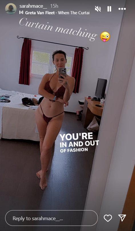 Сара не изостави да се фотографира во провокативен костим за капење па пред следбениците го покажа извајаното тело. Полна со самодоверба, задоволно позираше пред камерата на мобилниот од хотелската спална соба.