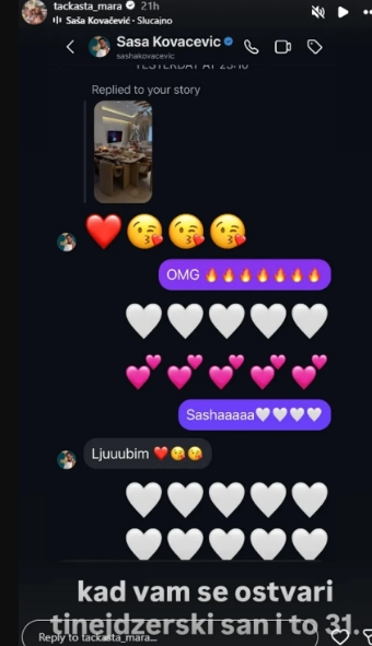 Пејачот Саша Ковачевиќ ја изненади инфлуенсерката Ивана Слипчевиќ, попозната како Тачкаста Мара, со неочекувана порака на Инстаграм.