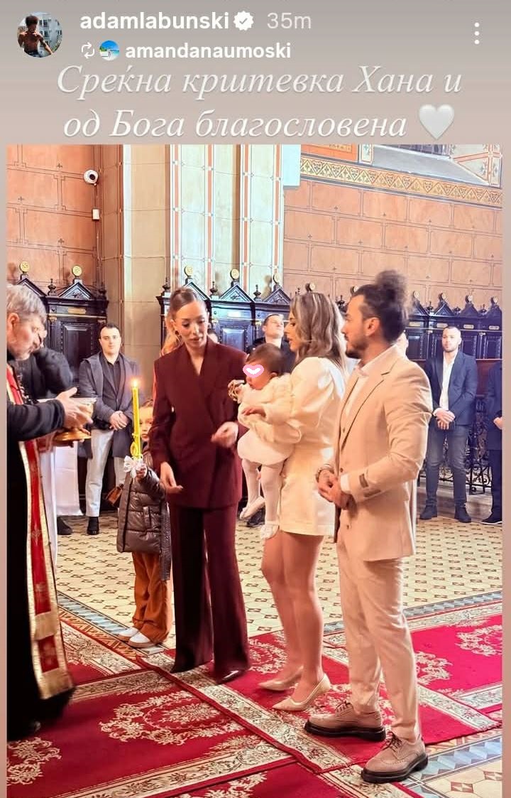 Повод за мама Јелена и тато Адам да ги поканат најблиските на чело со кумата за да се направи црковниот обред за малечката да ја прими верата Христова.