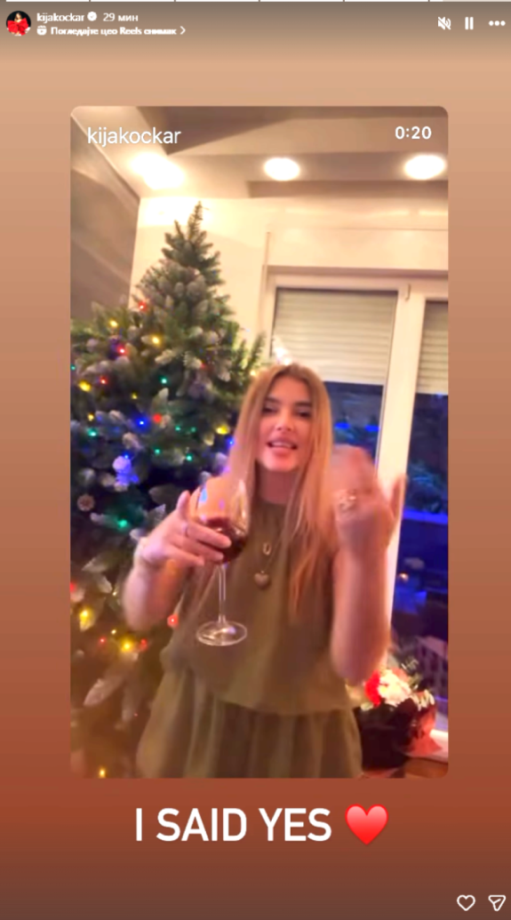 – Се случи на мојот омилен празник, Божиќ. Како што знаете, секоја година организирам вечера за пријателите и додека разменуваме подароци, тој клекна и ми предложи брак. Секако, реков ДА! Не можеше да избере подобар момент. Божиќ, моите најмили пријатели заедно, интимна атмосфера. Тој точно знаеше какво запросување и каков прстен сакам, затоа го сакам – рече воодушевено Кија, чиј веренички прстен е особено интересен.