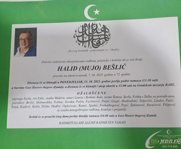 Халид Бешлиќ ги остави зад себе својата неутешна сопруга Сејда и синот Дино, кој сподели семејна фотографија на својот Инстаграм профил и се збогува со својот татко.