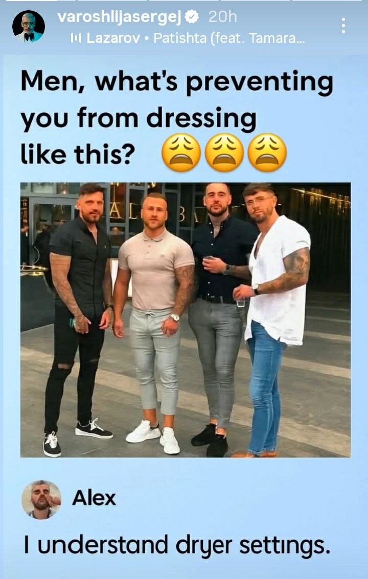 Само неколку симболи од емотикон смајли во ужас беше доволна реакција од Сергеј дека оваа машка мода треба да замине во историја без повраток.
