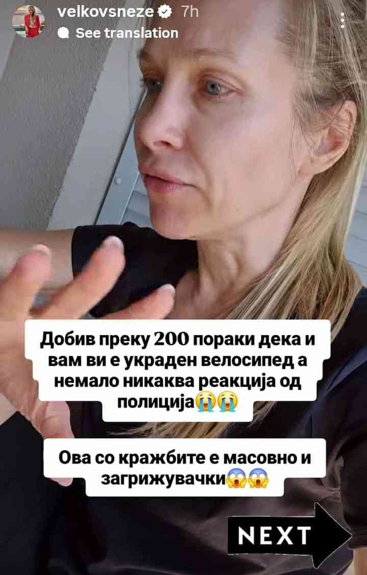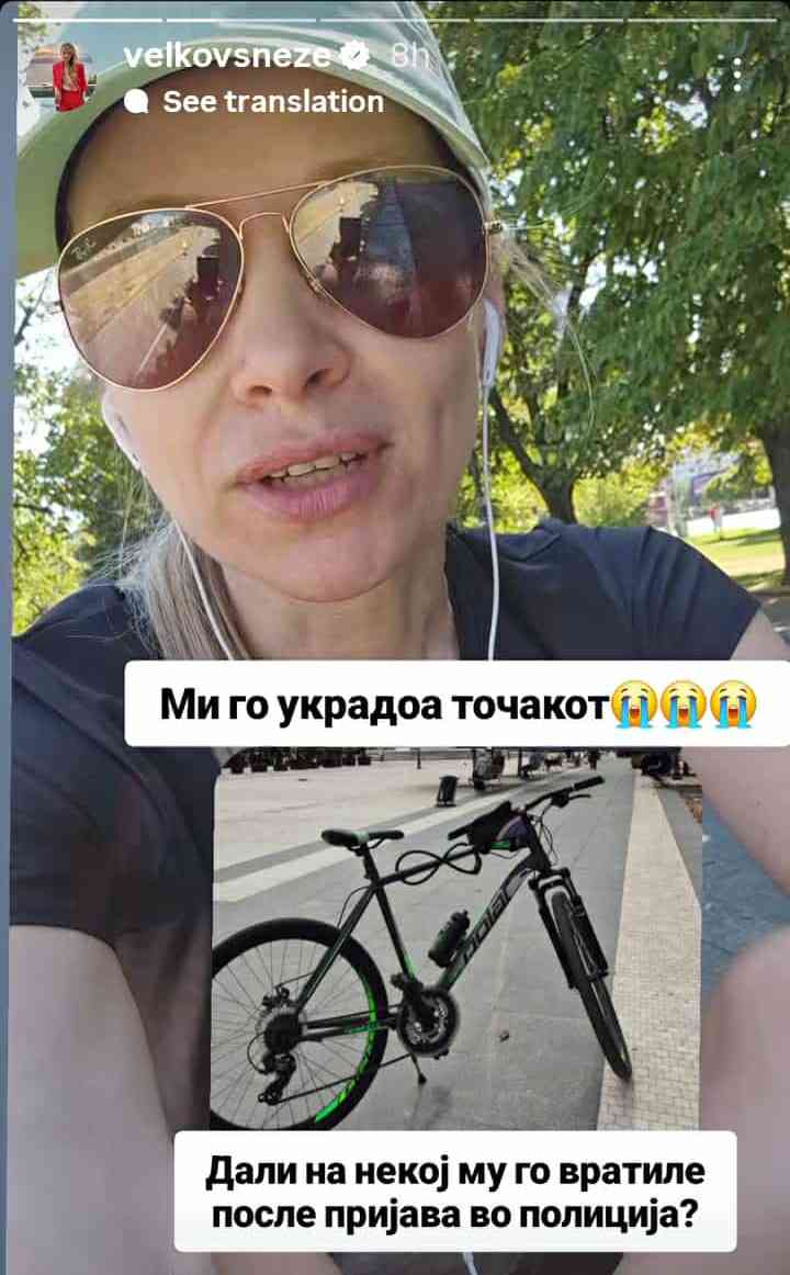 ТВ водителката Снеже Велков остана оштетена и ни повеќе, ни помалку, туку и го украдоа еден од најдрагите предмети – велосипедот.