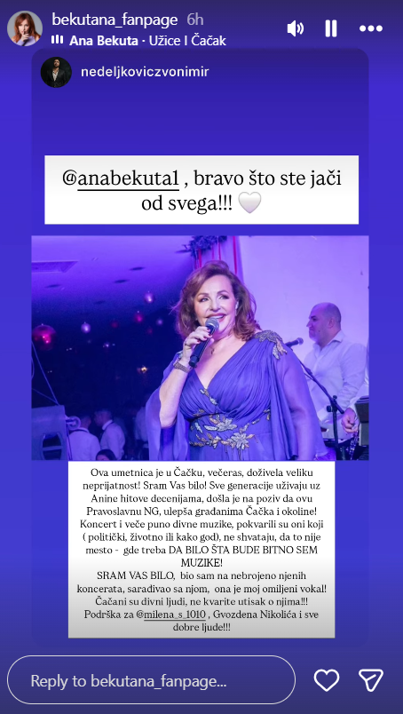 На концертот на Ана Бекута по повод српската Нова Година во Чачак синоќа се случи инцидент, кога неколку собрани демонстранти фрлаа снежни топки кон пејачката.