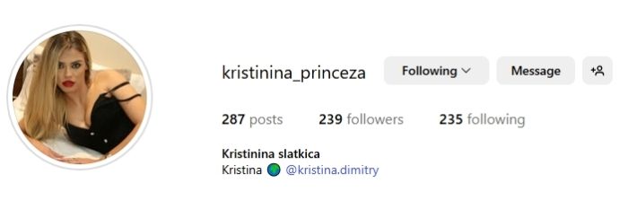Имено, кому му е познато, кому не, ама однеодамна Кристина Димитри има и нов Инстаграм профил… Или поточно уште еден, дополнителен, малку поинаку насловен… Кристина принцеза /kristinina_princeza/.