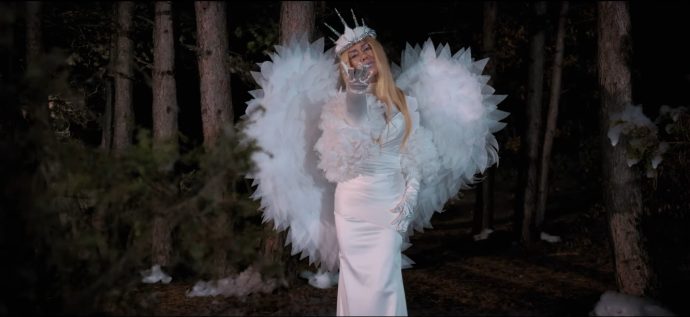 Во кадрите Стојне се појавува во впечатливи креации од Atelier by Sonja & Marija, додека за шминката се погрижи Маја Диневска, која стои и зад креацијата на впечатливите крилја што се појавуваат во спотот.