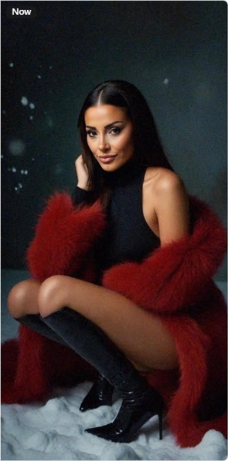 Во црни чизми со високи потпетици, и овој пат наметната со крзнена бундичка, само сега црвена, Гавазова изгледа како како заводлива секси дадамразица која секое вистинско машко би посакало наместо Дедо Мраз, таа да му тропне на врата, како подарок што не се одбива.