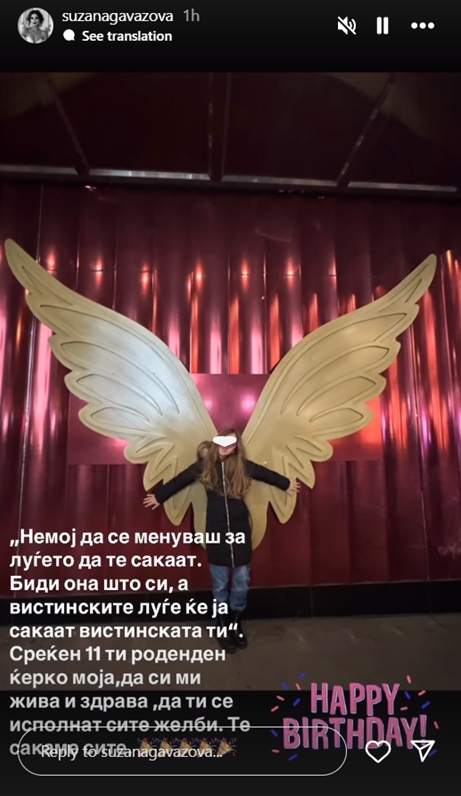 – „Немој да се менуваш за луѓето да те сакаат. Биди она што си, а вистинските луѓе ќе ја сакаат вистинската ти.“ Среќен 11-ти роденден ќерко моја, да си ми жива и здрава, да ти се исполнат сите желби. Те сакаме сите.