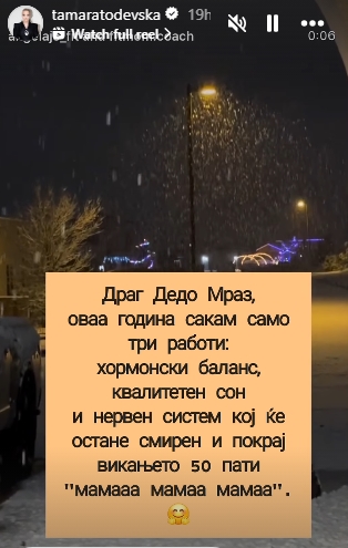 Пејачката Тамара Тодевска токму преку Инстаграм му ја испрати својата новогодишна желба во Дедо Мраз која гласи вака: