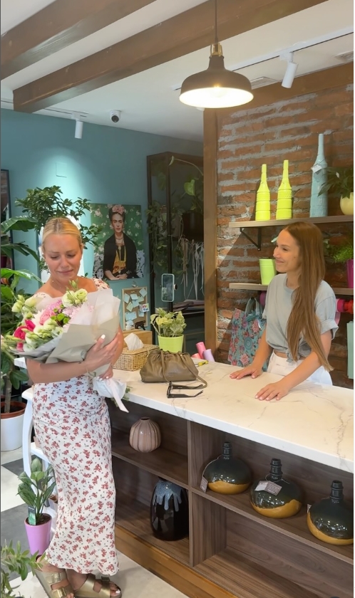 „Јас ова не го нарачав… Јас ова не знам што е, дали се конфети или е цвеќе“ – вреска пејачката додека лутито го треска букетот од тезгата, кој се распаѓа и разлетува на сите страни низ цвеќарницата!