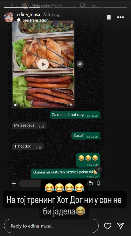Имено, Едина јавно го сподели разговорот со сопругот, Александар Мачка, и откри што одбира за ручек после тренинг.