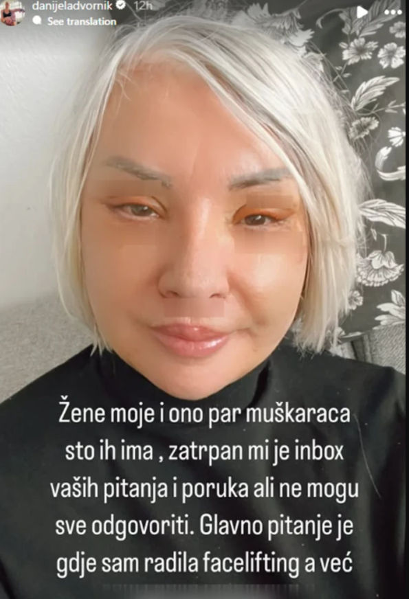 „Отидов да ги отстранат конците на очните капаци, под очните капаци, зад увото и овде околу усните. Тоа би било сè, треба да се отстранат и конците зад увото, а потоа ласерот ќе се користи за корекција на некои промени на кожата. Мора да бидете трпеливи, потребно е време отокот да исчезне, тоа не може да се случи преку ноќ. Трпението е клучно“, рече Данијела, давајќи им на тој начин поддршка и совет на секој што ќе одлучи да преземе сличен чекор.