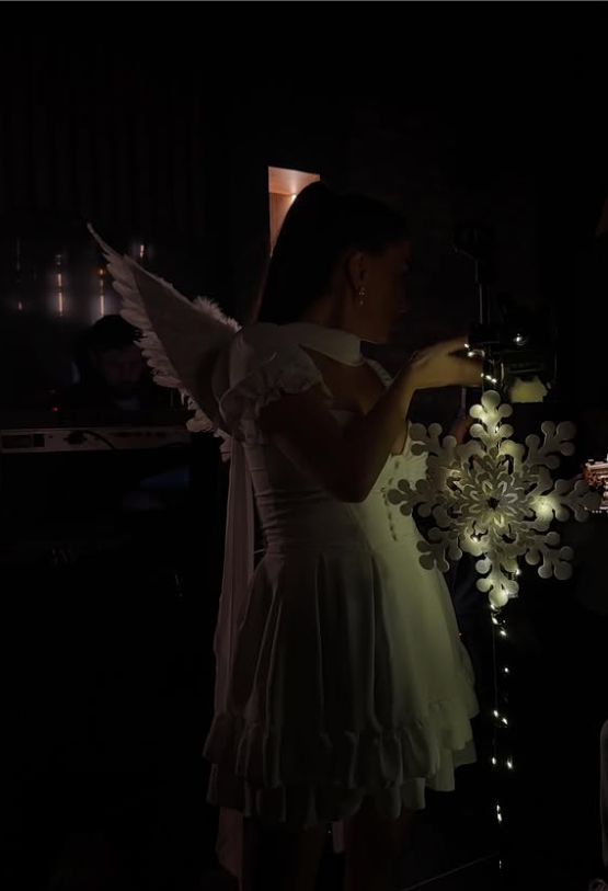 Само ден – два подоцна уште една нејзина помлада колешка сподели фотографии променета во истиот божиќен „еротско – англески“ аутфит. Македонската учесничка во „Ѕвездите на Гранд“, на еден од своите претпразнични настапи се појави во бело кусо фустанче со ангелски крилца на грбот и ореол над главата, како уште еден „ангел на гревот“, само не на снегот, туку пред микрофонот украсен со голема светлечка снегулка.