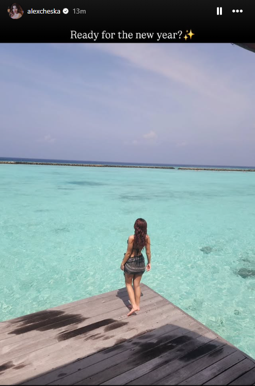 Онака опуштена и расположена да се освежи, можеби и се’ уште мамурна, пејачката се упати кон блискиот дрвен док подготвена за капење пред дочек на Новата 2026-та. Фрли еден поглед кон безграничната океанска шир и таман пред да го направи решавачкиот чекор, да скокне во окенските води… Господ и ги отвори очите!