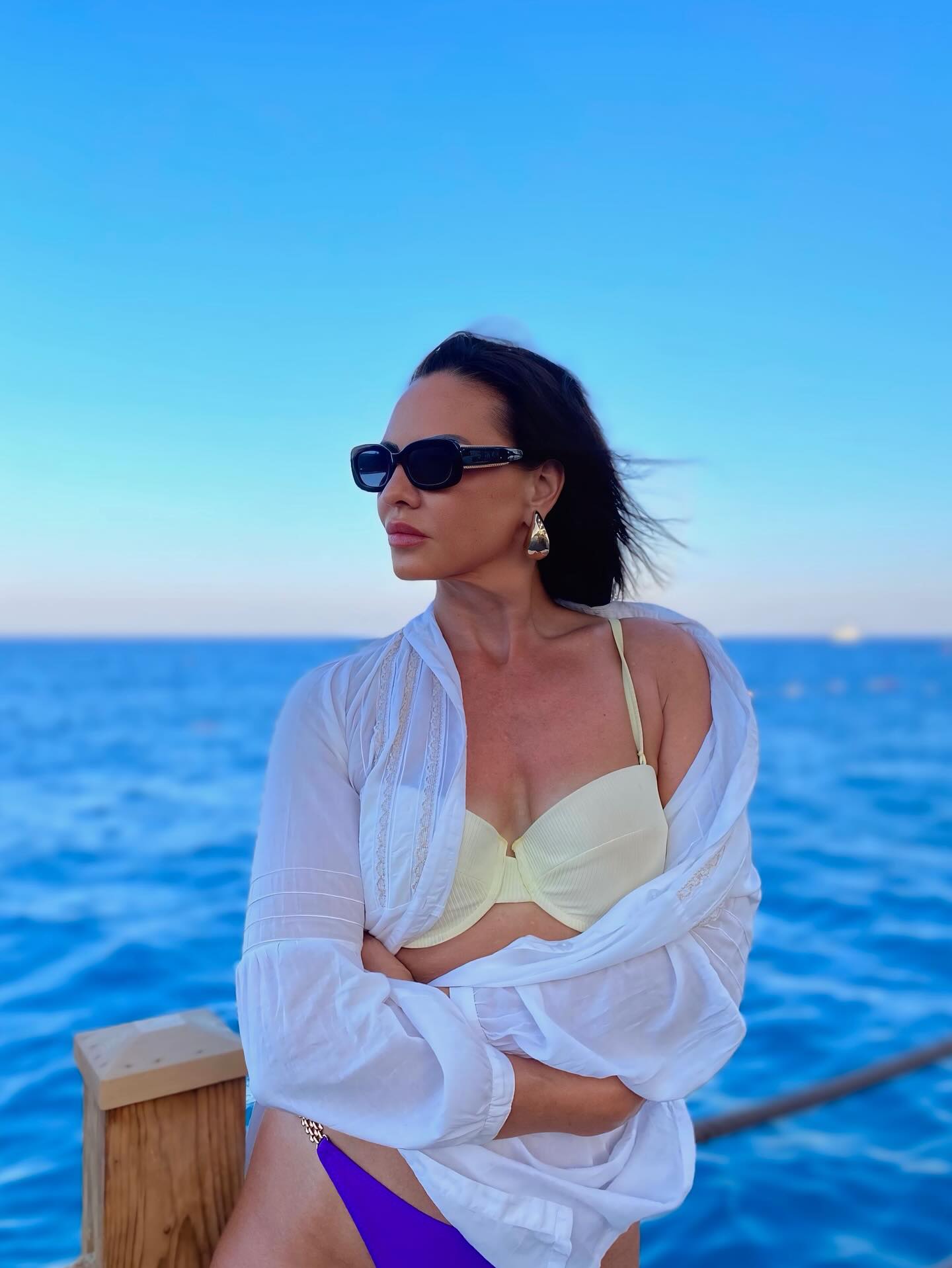 На најновите фотографии кои таа ги сподели пред јавноста на социјалната мрежа Инстaграм каде што е активна, таа не позира за моден едиторијал или некој професионален ангажман. Овој пат со слободен дух и без претерана формалност го улови моментот додека уживаше на море.