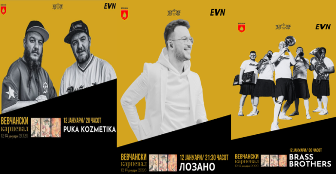 Со концерти на популарна музика, на кои ќе настапат рап-дуото „Пука козметика“, „Влатко Лозаноски бенд“ и „Брас брадрс“, вечерва почнува традиционалниот „Вевчански карневал 2026“ во Вевчани.