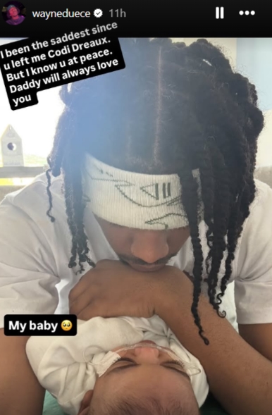 Свршеникот на Кори и татко на девојчето, Вејн Дјус, исто така се прости од ќерката преку низа објави на Инстаграм. „Откако нè напушти, Коди Дрео, потажен сум од кога било. Но знам дека сега си мирна. Тато секогаш ќе те сака“, напиша тој покрај фотографија на која ја држи ќерката. „Моето бебенце“, додаде.