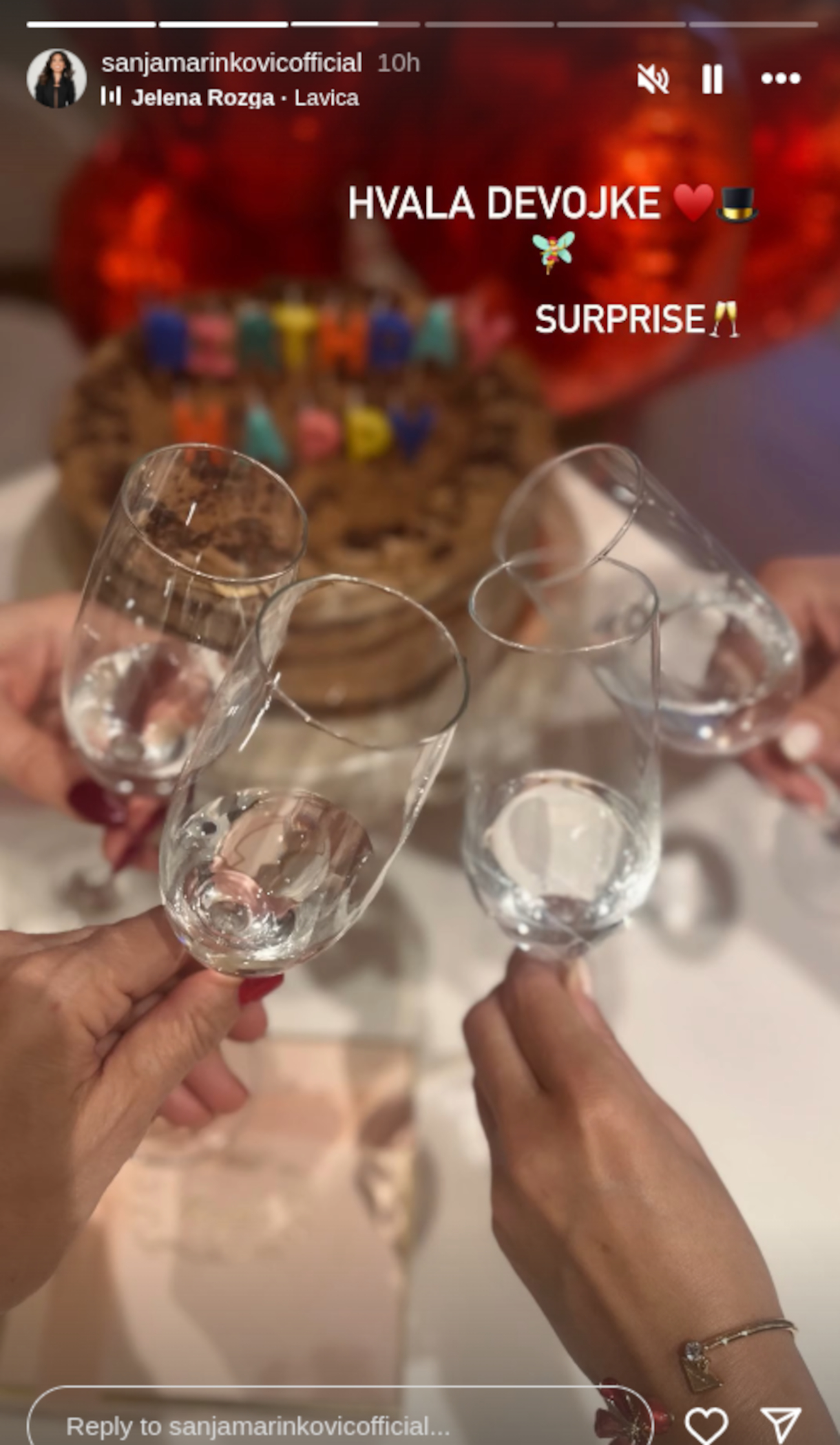 Имено, таа сподели фотографија со водителката Бојана Лазиќ, која и испрати честитка, а потоа им се заблагодари на другите пријатели за убавото време и изненадувањето што и го приредија.