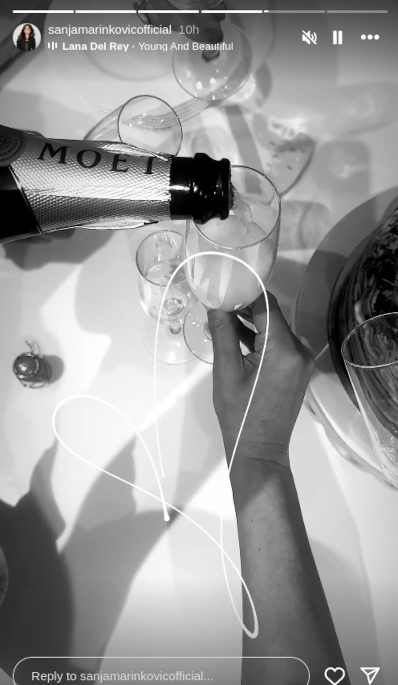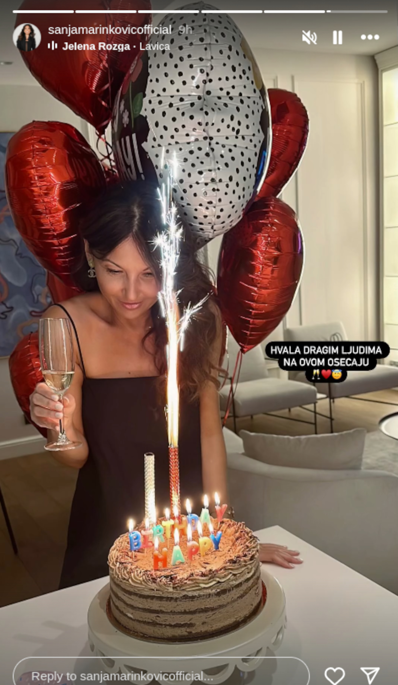Имено, Сања ги дувна свеќите на тортата, а потоа наздрави со шампањ, а веселата атмосфера ја сподели на нејзиниот Инстаграм профил.