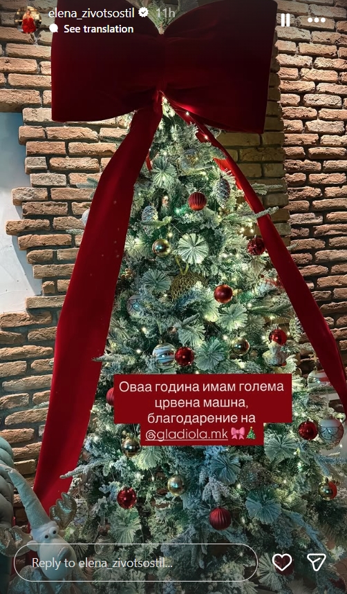 Новогодишните елки на познатите повторно привлекуваат внимание, а една од најзабележителните е елката на македонската водителка и инфлуенсерка Елена Стефановска, сега позната како Најдоски.