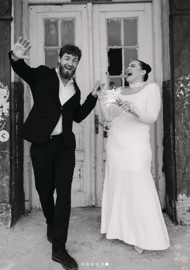 Таа во бел фустан и нежен бидермаер од кали со рацете, а Кристијан држејќи го изводот на матичната книга на венчани, двојката објави дека е во брачните води.