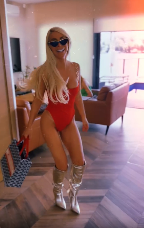 Бојана е многу активна на социјалните мрежи, а сега се сними во својот стан додека носеше црвен костим за капење кој ги истакнуваше нејзините бујни гради, но и долгите, витки нозе.