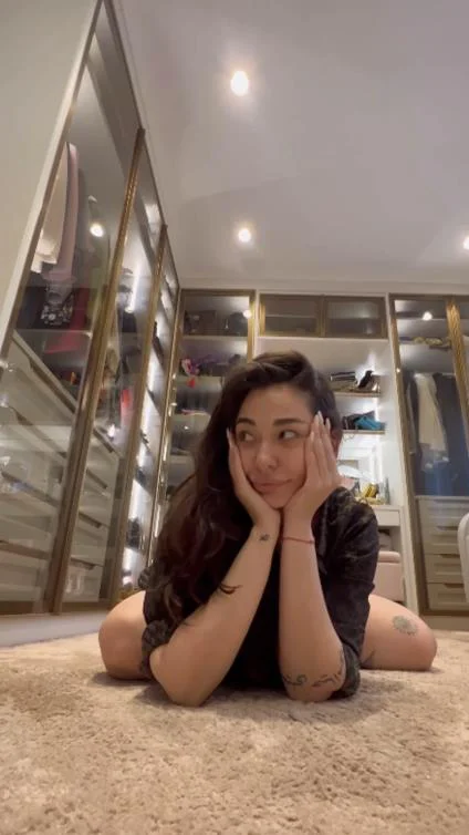 Таа на својот Инстаграм профил покажа гардеробер кој зафаќа цела соба. Пејачката се сними додека седи на подот, додека јасно се гледа дека во позадина е нејзината колекција работи, вредни неколку илјади евра.